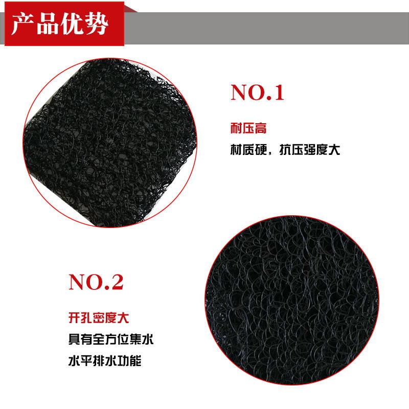 土工席墊與無紡?fù)凉げ紡?fù)合后,能在掩埋的封閉覆蓋層之下,將匯集滲透過土壤覆蓋層的雨水或堆場本身排放的污水,利用其獨特的排水功能,按照工程要求從土工席墊夾層中有序排放,而不會形成淤堵。因此可以避免因土壤覆蓋層吸水飽和而產(chǎn)生可能的滑動問題。土工席墊既能排水,同時也可排放土壤(特別是垃圾廢棄物)中因發(fā)酵產(chǎn)生的沼氣,在垃圾填埋場中應(yīng)用尤其適用。土工席墊與HDPE土工膜結(jié)合應(yīng)用時,同時能起到很好地保護HDPE膜不被穿刺的作用。